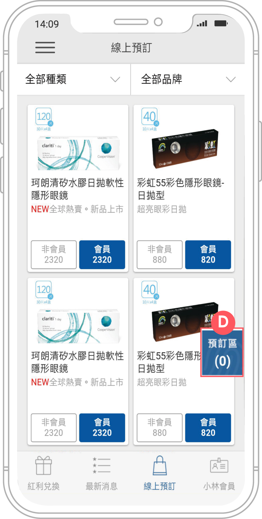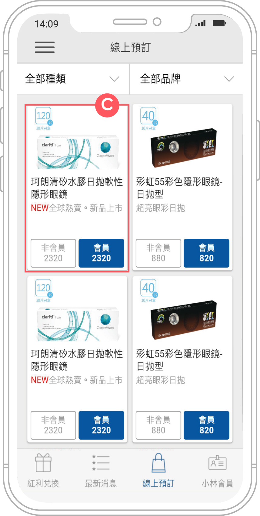 您在消費拋棄隱形眼鏡、藥水及保健食品類商品,每50元可以累積紅利1點,紅利點數可在點數優惠購使用。